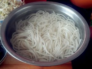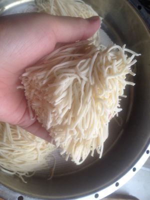 超市买的拉面,本身就是熟的,用沸水再煮一分钟,滤干水,用凉水冲一遍,更筋道!