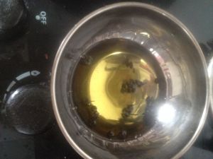 锅里剩余的色拉油,开始把鸡蛋放碗里打散,火关小点开始炒鸡蛋!