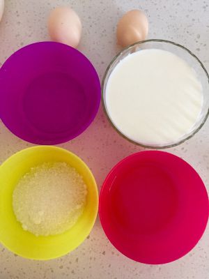 做焦糖。很少的水(大约50毫升)里面加入白砂糖小火烧开,不需翻炒,等闻到焦糖味道,倒入少许开水,分别倒入布丁瓶或碗中,淡淡的一层就可以了