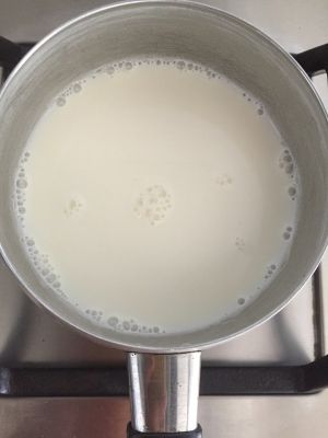 洗干净奶锅,再放入750ML牛奶,200ML奶油和20g香草糖煮到60度左右