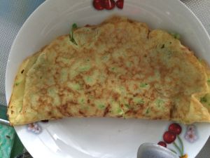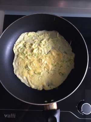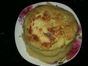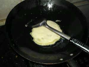 锅中放油 用勺子舀一勺放入锅中 待下面凝固 可翻面 煎至两面金黄 面熟即可 (锅要是方便 最好选择平底锅 我家用的就不是 所以略小)