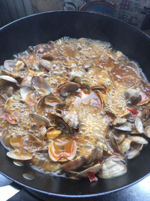 烧水,水开后下花蛤,焯熟(外壳打开后3分钟就差不多了),捞出控水备用...焯水是为了让花蛤吐出体内的水分,直接活着下锅炒会吐出半锅汤...