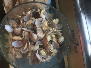 花蛤洗净,放一勺盐,让它把沙土吐净