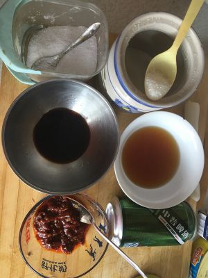 葱姜切细短丝,蒜拍碎;郫县豆瓣酱3g装碟备用;酱汁调匀备用(3g蚝油3g糖10ml生抽10ml料酒), 我用了等量的木糖醇代替白糖~ 香菜切3CM大段备用