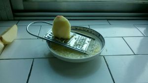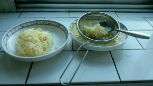 叉丝,倒进盐水,防止苹果氧化,一定要浸泡两分钟。