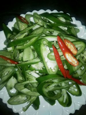 把选好的湖南椒洗净切好,切成斜块或者丝都可以。