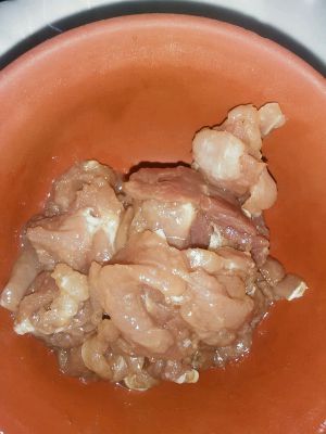 先将肉切细丁,弄点淀粉捏两下,这样肉就会变得嫩些。