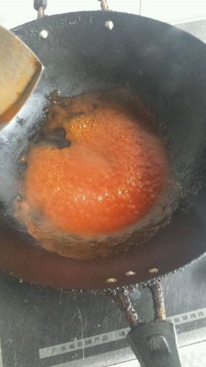 番茄酱,香醋,糖放锅里烧开起泡后,倒入淀粉水