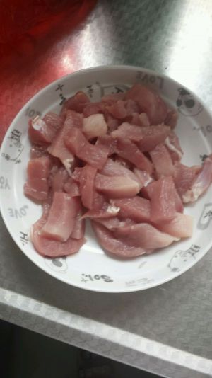 里脊肉切小块加料酒适量盐抓匀腌30分钟左右