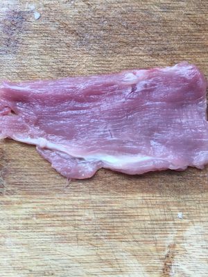 切一厘米宽的长条,把里脊肉条放入一点料酒,生抽,盐,香醋,腌制半个小时