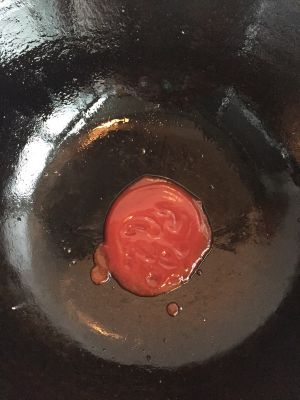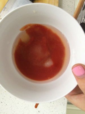 一大勺番茄酱,爱吃酸的就多放一点,一小勺糖,一点水,搅拌均匀。