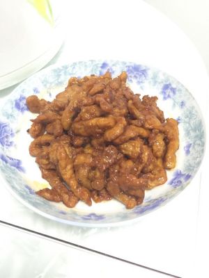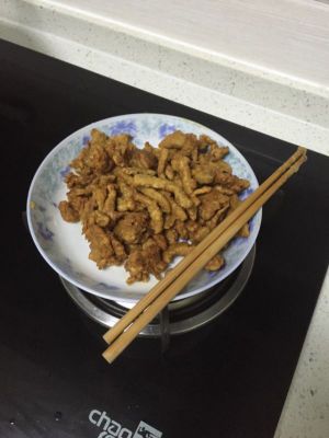 再过一次高温,两次的目的是为了让里脊焦一些,但是我挂糊太稀了