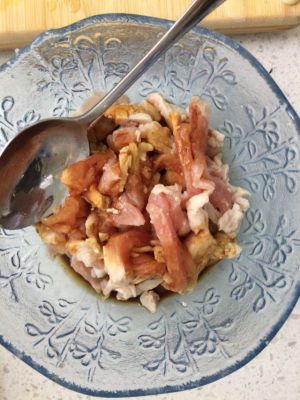 加入一小勺料酒,一小勺酱油,拌均匀,腌制10分钟左右。