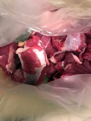 买来的牛肉斩比一口大小稍大一点的大块,因为牛肉会缩水,所以不要切太小。