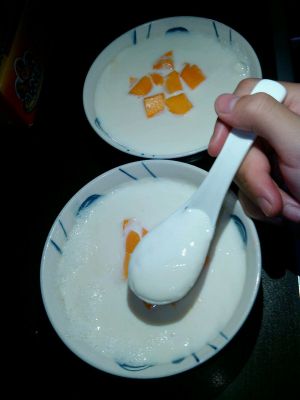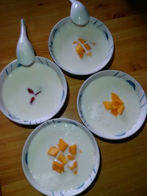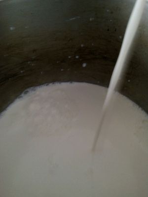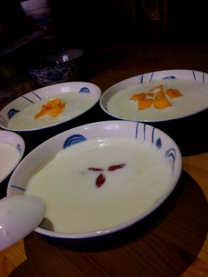 将牛奶蛋清混合液倒入最初划破的口,奶皮会升起来依旧在表层。