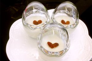 小心的在碗的里边加入搅拌均匀的奶,盖上保鲜膜入蒸炉,蒸10分钟左右后关火,不要打开盖子等半分钟或一分钟,即可。