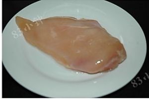 准备新鲜的鸡胸脯肉洗净沥干水份备用
