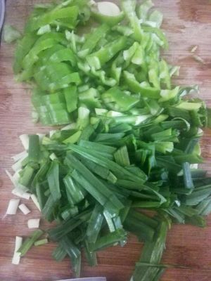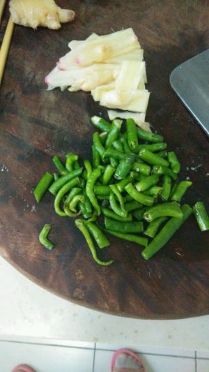 准备小青椒少量,这个自己家里种的,本人喜欢吃姜,加了一块蒜姜,没有的可以不加