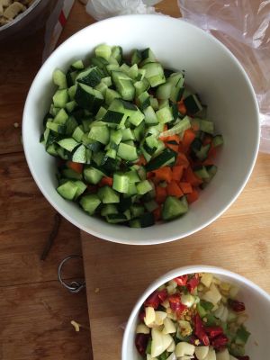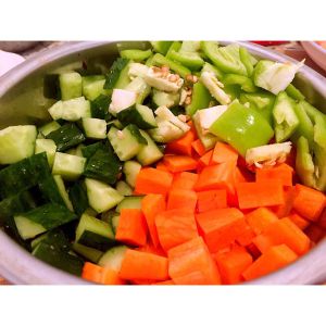 黄瓜、胡萝卜、青辣椒切丁