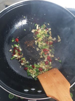 备好葱花,蒜末,姜丝。热油,将腌好的鸡肉炒7成熟,捞出。炒香葱姜蒜。