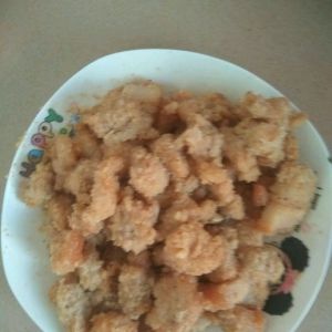 拿出腌制好的五花肉,把蒸肉米粉倒进去,让每一块肉都均匀的粘上蒸肉米粉。可以在盘子低下放你喜欢的配菜,把肉放在上面一起蒸。