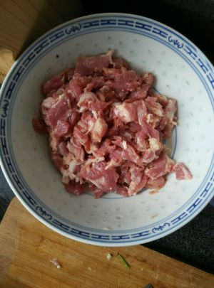 瘦肉切片,放入,料酒,蛋清,淀粉,腌10分钟,
