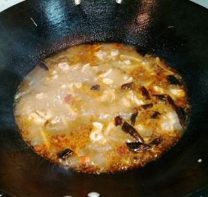 热锅放油先加入生姜大蒜爆香,再放入豆瓣酱水煮肉片料翻炒。