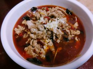 后加入一定量的清水或高汤等水烧开后放入肉片煮5分钟左右,再放盐、鸡精起锅。