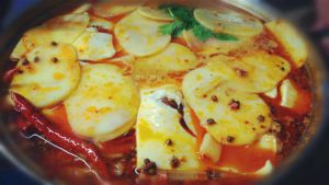 把鱼头鱼骨熬制成白汤,中间不交加任何材料,待15分钟后汤成白色加入八角桂皮草寇等大料,煮3到5分钟!太早放入汤色不好!然后盛出备用!