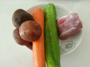 青椒,胡萝卜,香菇,猪肉里脊洗净备用