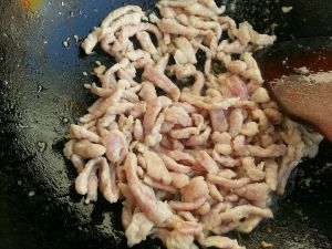 ,油热了后 倒入肉丝 慢慢翻炒
