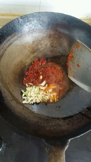 然后再往锅中倒入少许酱油鸡精,老干妈一勺或两勺,最好再少放点糖提味.