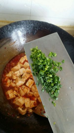 豆腐炒两分钟后加一点鸡精和酱油,视个人口味而定。