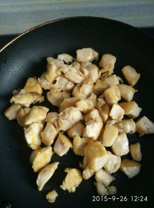 腌制好的鸡胸肉下锅炒至8分熟备用