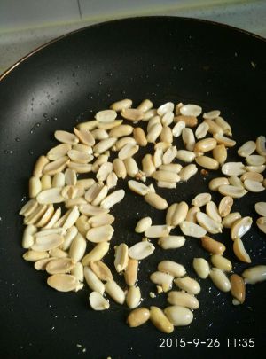 锅中倒入油,热锅凉油下入花生米,小火炸熟,稍微变色就可以捞出来,避免炸糊。