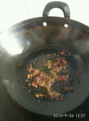 锅中底油,放入麻椒,炒出香味。倒入郫县辣酱,如果酱干,可以少加一些清水,炒出红油。