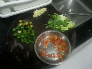 辣椒,干辣椒切丁(按自己口味,喜欢吃辣可以加多点)酸切碎,大蒜切段
