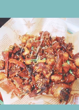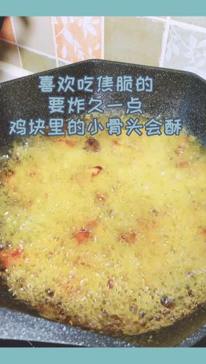 油温烧至八成热,复炸一次,外酥里嫩。 喜欢吃焦脆的,炸得久一点,这样鸡肉里的小骨头会酥