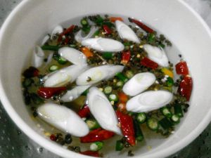 糟卤一瓶,泡椒一瓶的水和半瓶的泡椒,葱,姜切大片。