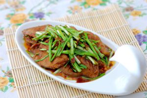 下入青蒜,点少许料酒,糖调好味道即可出锅