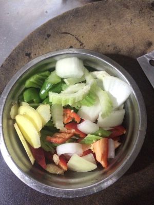 青辣椒红辣椒切段 姜切片 (西芹切片 稍微厚一点点)洋葱切片 备用