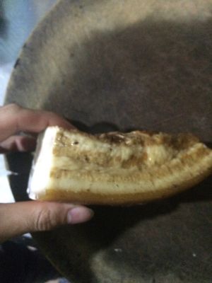 再将五花肉放进去翻炒至微卷(因为我这肉沒选好,所以炒不出漂亮的样)