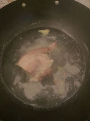 肥瘦相间的五花肉焯水(细节参考前面发布的回锅肉)