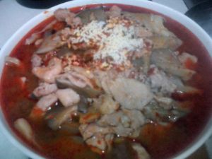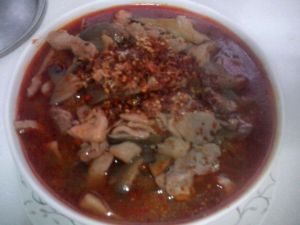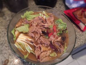 美味可口的少辣的水煮肉片做好了的,可根据个人口味增减辣味(照片没照好,有些模糊,不过真的很好吃)