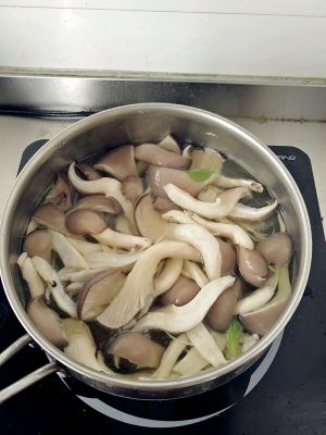 煮青菜水不要到掉,趁热放入蘑菇。煮两分钟。蘑菇我喜欢软点,就煮久点。