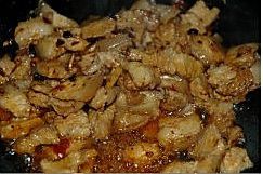 再将五花肉放进去翻炒至微卷(因为我这肉沒选好,所以炒不出漂亮的样)