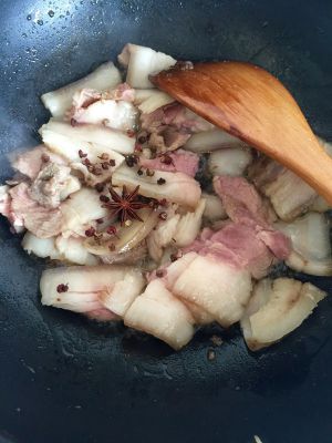放入花椒八角接着翻炒片刻。
