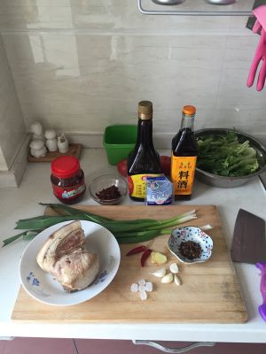 起锅烧油,放入五花肉略煎至金黄,捞出。锅内留油,爆香豆瓣酱和姜葱蒜青红椒,放入煎好的五花肉,放调味品,烹入料酒,翻炒几下即可出锅!