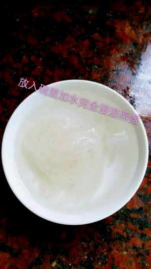 1.把5克干燕窝放水里泡发,大概泡上4小时就完全发开了,请注意每小时换一次水,这样可以让燕窝更干净也可以先洗掉一些燕毛,本人用的是纯天然的毛燕窝,吃的过程中会烦麻。,但是吃得放心哦。当然白燕更方便点,但亲们不要买到刷胶或者漂白的就好了!