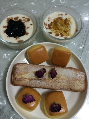冷藏好后取出,品尝到的每一口里都有玫瑰花香的味道,真的是很好吃,还可以根据个人口味,吃原味的,或者放入蓝莓,红豆。